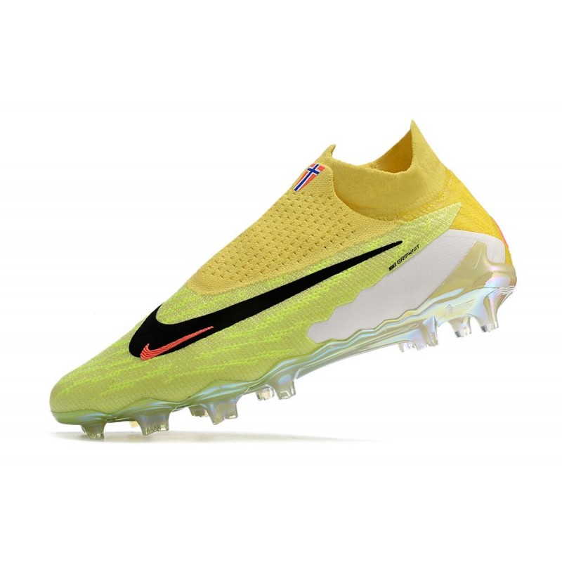 Grâce à la nouvelle tige, la Nike Phantom GX Elite DF Fmarque américaine a mis en place une couche intérieure monobloc qui agit comme une structure et maintient le pied complètement scellé et enveloppé. Nous avons toujours un cordage classique légèrement tourné vers l'extérieur.